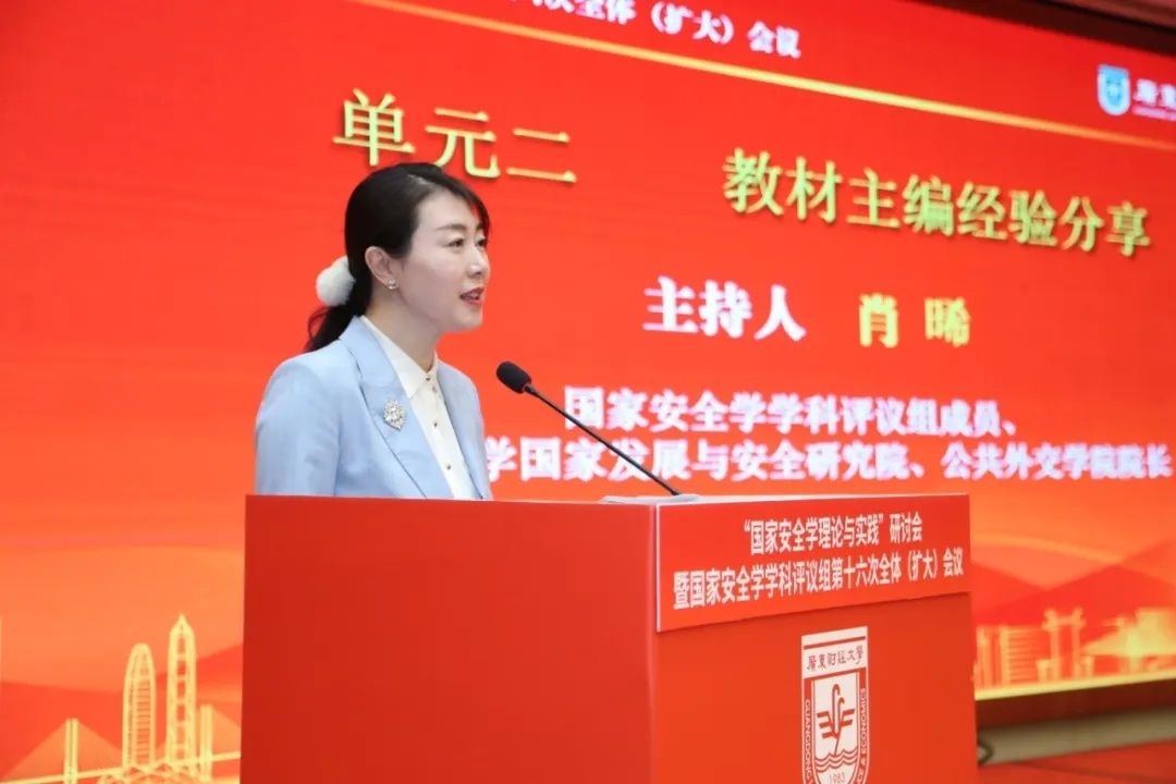 “教材主编经验分享” 单元由国家安全学学科评议组成员、吉林大学国家发展与安全研究院、公共外交学院院长肖晞主持。