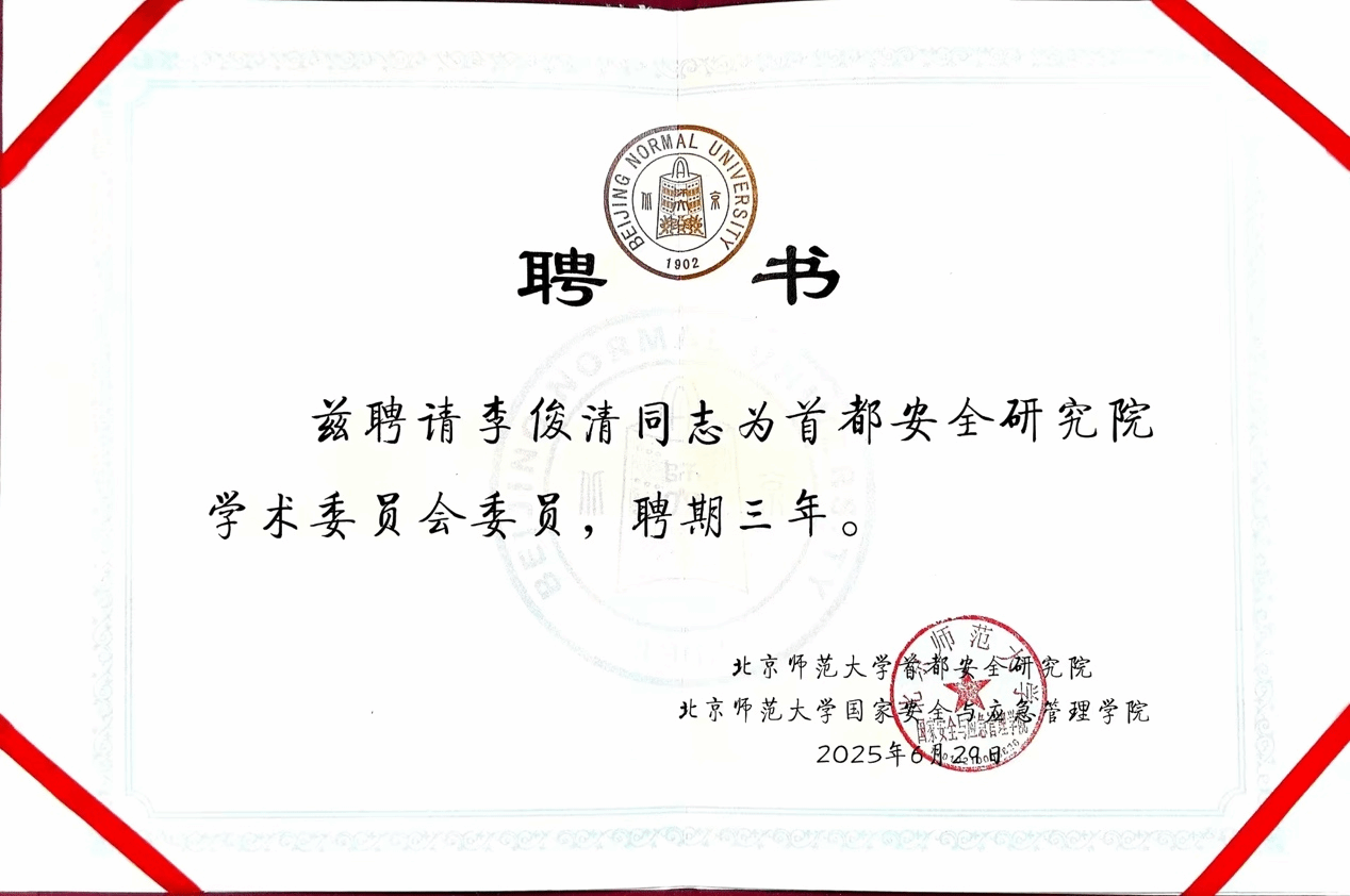在国家安全法颁布十周年之际,首都安全研究院学术委员会第一次全体会议暨“AI与城市智慧应急”学术研讨会于2025年6月29日在北京师范大学举行。中国灾害防御协会会长、原应急管理部副部长郑国光,北京市委国安办领导,北京师范大学党委常委、副校长汪明,以及北京市、区相关部门和北京师范大学相关单位负责人出席会议。来自清华大学、北京大学、中国人民大学、国防大学等十余所高校与研究机构的专家学者共50余人参会。会议由北京师范大学国家安全与应急管理学院院长刘凯主持。
